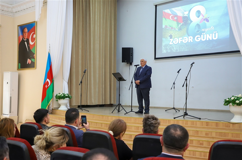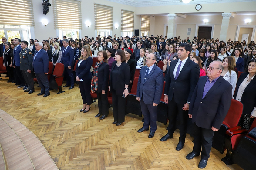 Universitet rəhbərliyi, professor-müəllim heyəti, tələbələr və Vətən müharibəsi veteranlarının iştirakı ilə baş tutan tədbirdə əvvəlcə Azərbaycan Respublikasının Dövlət Himni səsləndirilib, Vətən uğrunda canından keçən şəhidlərin əziz xatirəsi bir dəqiqəlik sükutla yad edilib.