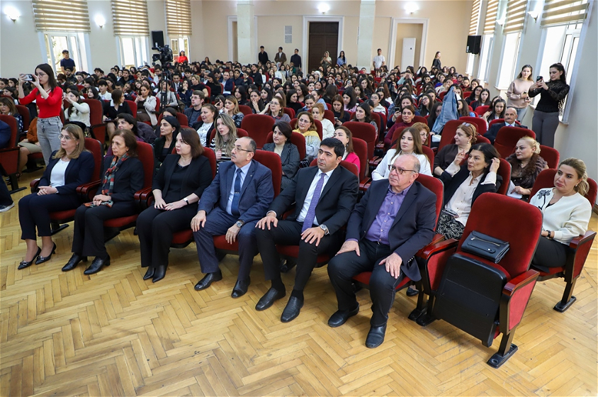 Tədbirdə həmçinin Erməni Strateji Araşdırmalar Mərkəzinin rəhbəri Aydın Eyvazov və İngilis-fransız dilləri fakültəsinin IV kurs tələbəsi Leyla Rzazadə çıxış ediblər. Qeyd olunub ki, Azərbaycan xalqı əsrlər boyu azadlıq, ədalət və ləyaqət uğrunda mübarizə aparıb və beş il öncə qazanılan Zəfər bu mübarizənin məntiqi nəticəsidir.